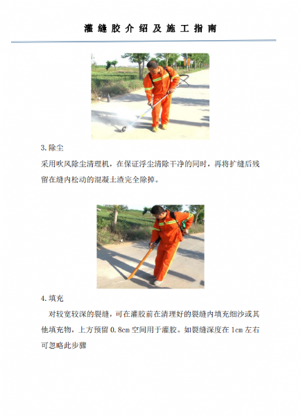 3.清槽. 用肩背式吹風(fēng)機(jī)將槽內(nèi)的碎渣及裂縫兩側(cè)至少10cm 范圍內(nèi)的灰塵清掃干凈;
