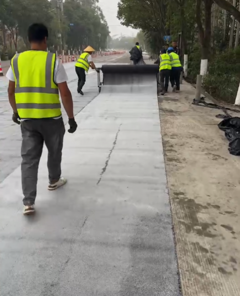 4. 高性能應(yīng)力吸收貼鋪設(shè)完畢后,用膠輪機(jī)或壓輥將高性能應(yīng)力吸收貼壓平