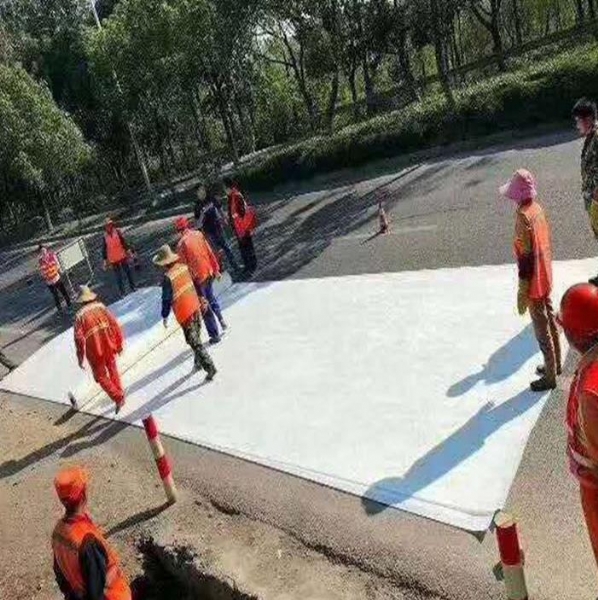 在熱拌瀝青混合料路面下安裝防水層,是保護(hù)和延長(zhǎng)道路壽命的較好方法之一.一般材料的防裂布在高溫時(shí)會(huì)變形,損壞,聚酯玻纖布是由非織造玻纖/聚酯制造.可以經(jīng)受改性瀝青混凝土的高溫施工.聚酯玻纖布的這種高溫穩(wěn)定性將給路面提供一個(gè)連續(xù),不變形的防水層,有用地防止水分浸透,避免因水分浸透而導(dǎo)致的路面層與基層的損壞.